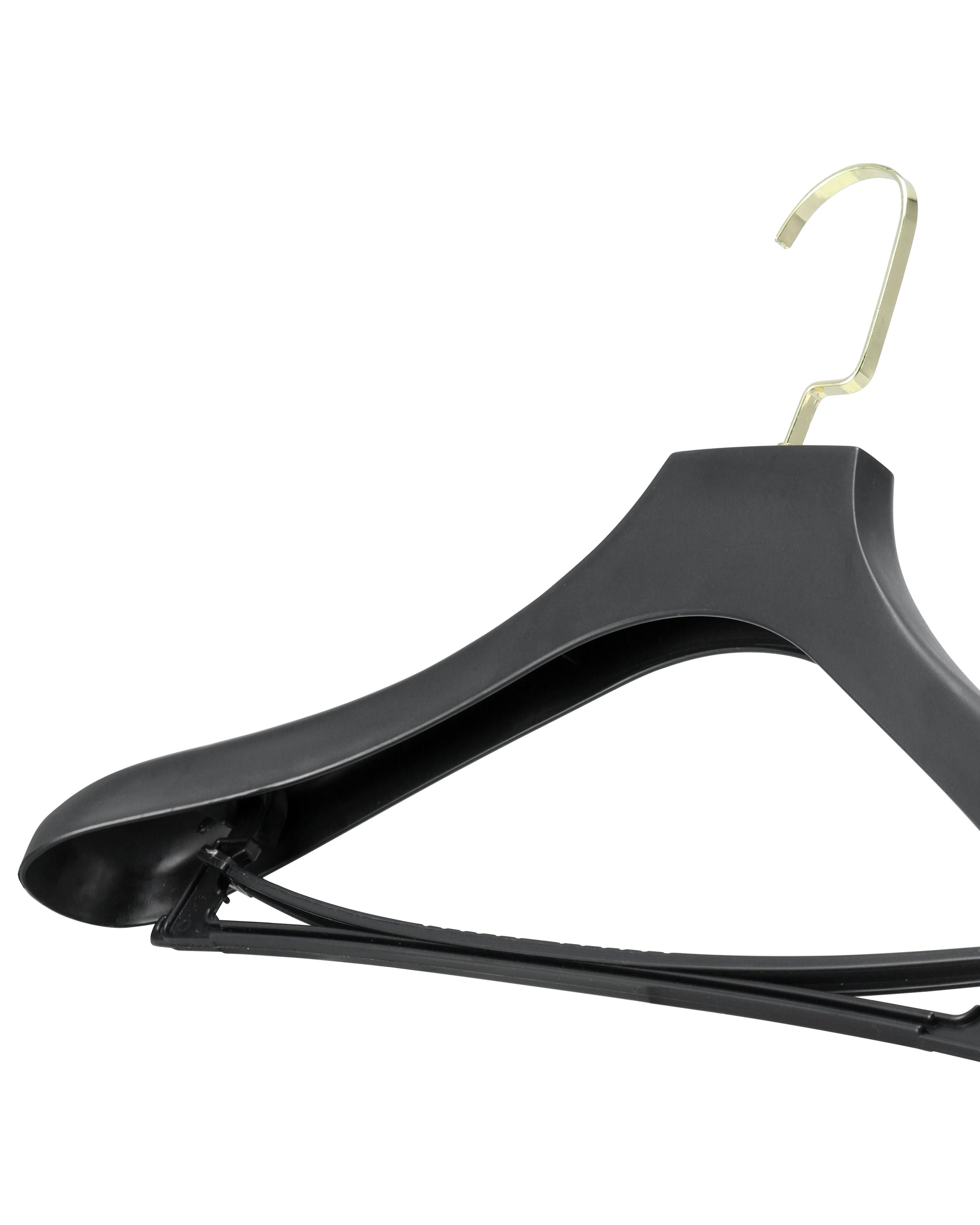 Suit hanger Smoothly finished for your finest delicates, Anti-rust hook swivels a full 360 degrees gold flat hook.