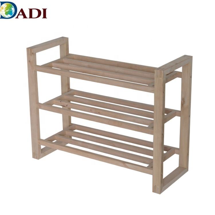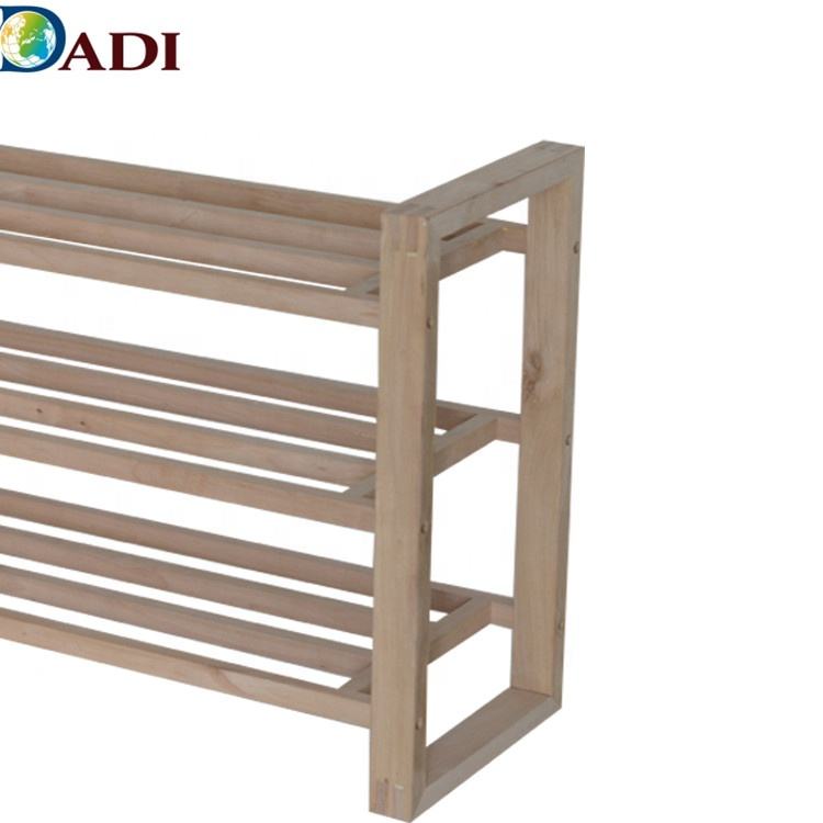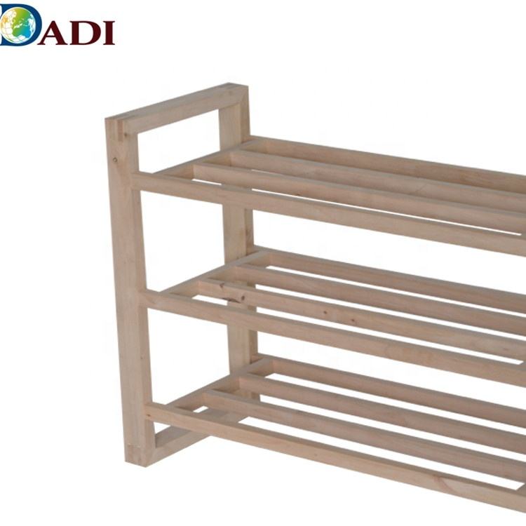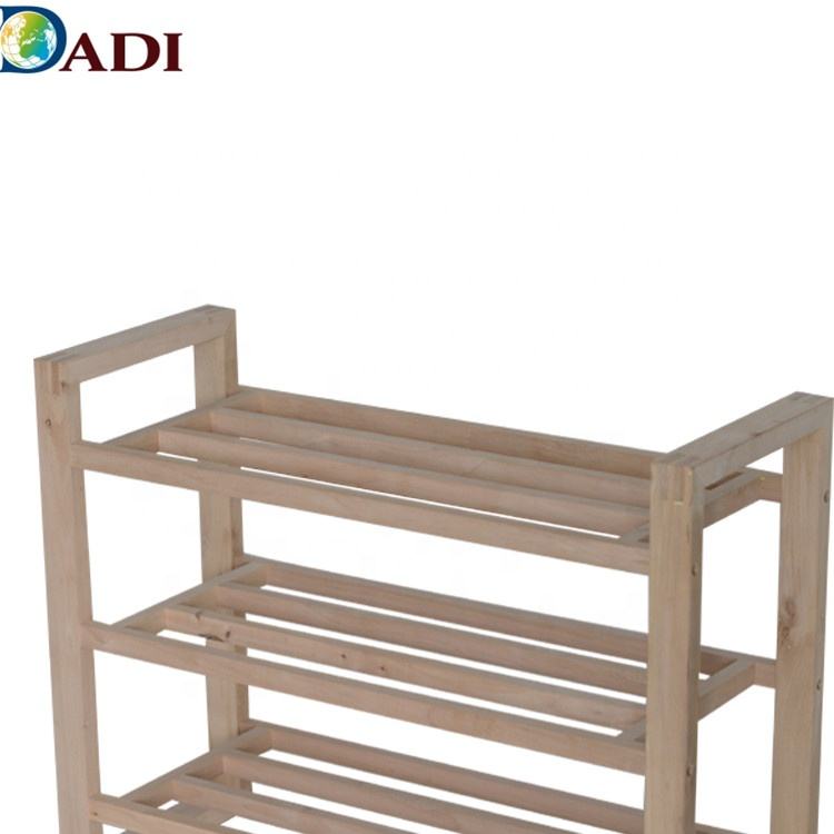 High Quality 3 Tiers Shoe Shelf Durable Wood Slatted Storage Shoe Rack For Hotel