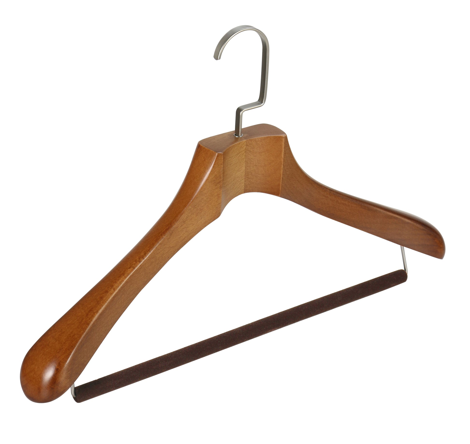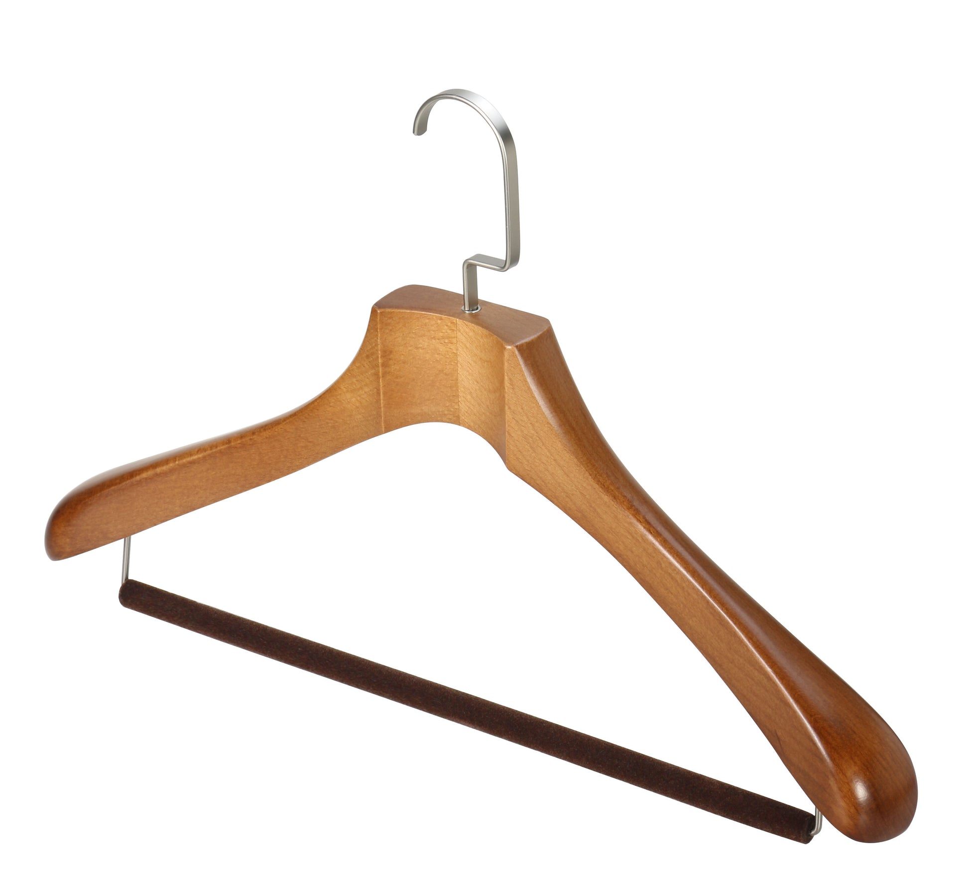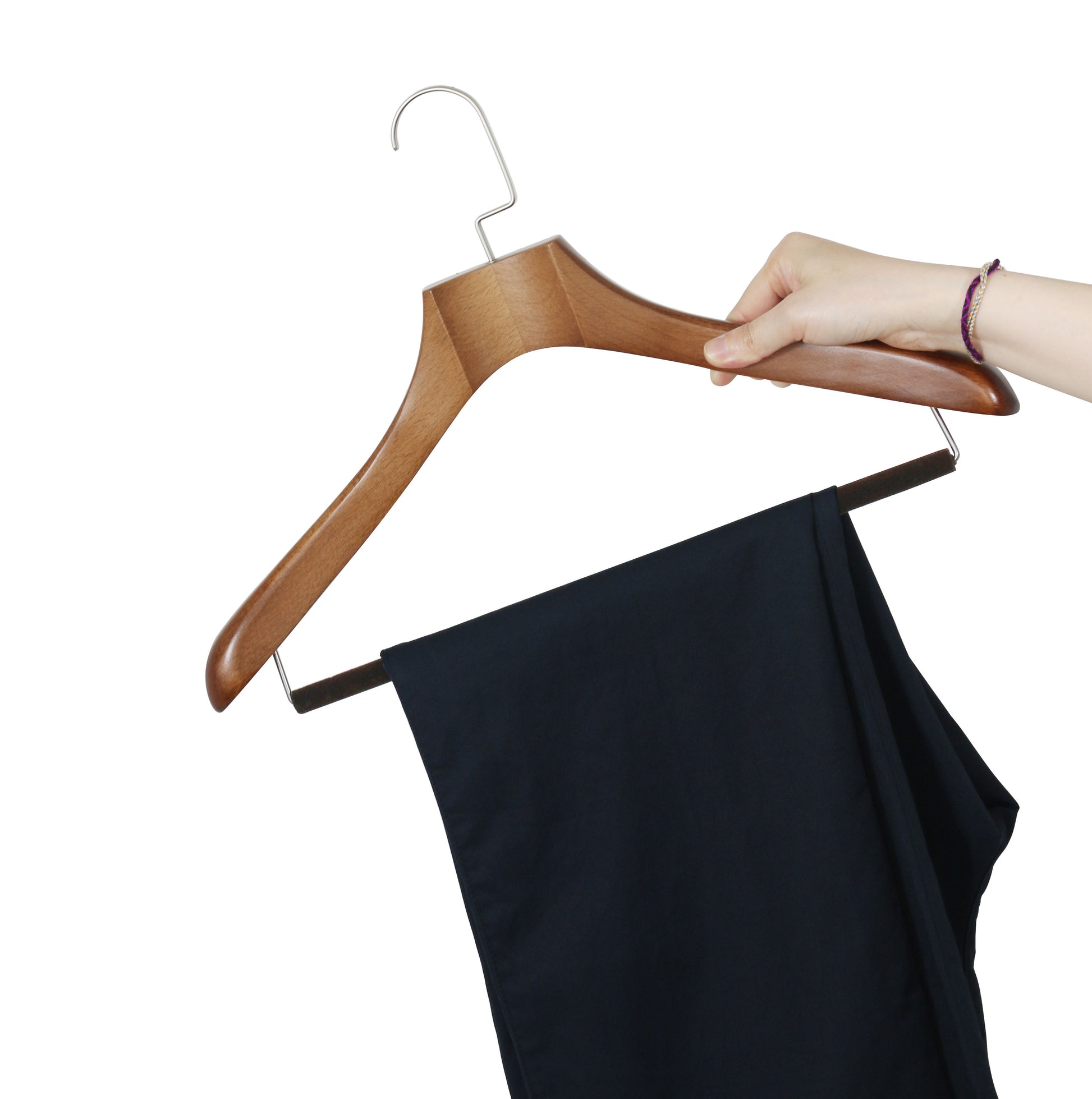 Top Quality Beech Wooden Hanger With Anti-slip Velvet Bar