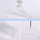 Heavy clear clothes hanger made of premium acrylic that won’t crack or break.