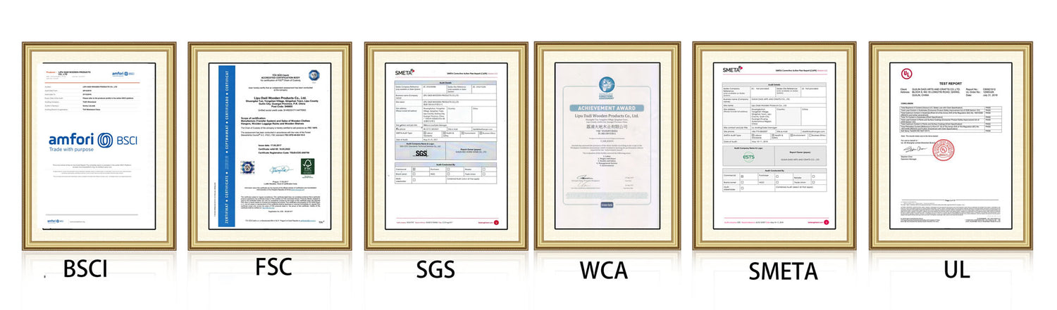A: We have FSC® (License Code: FSC-C135484) certificate and can provide you products made from sustainable wood source. For the plastic, we can use recycled material to help protect environment. We can also provide hangers made from degradable material. Thank you for caring about environment.
