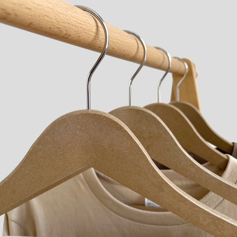 This wheat straw hanger is made of plant fiber composited with PP, which gives it a natural looking compared to normal plastic hangers.