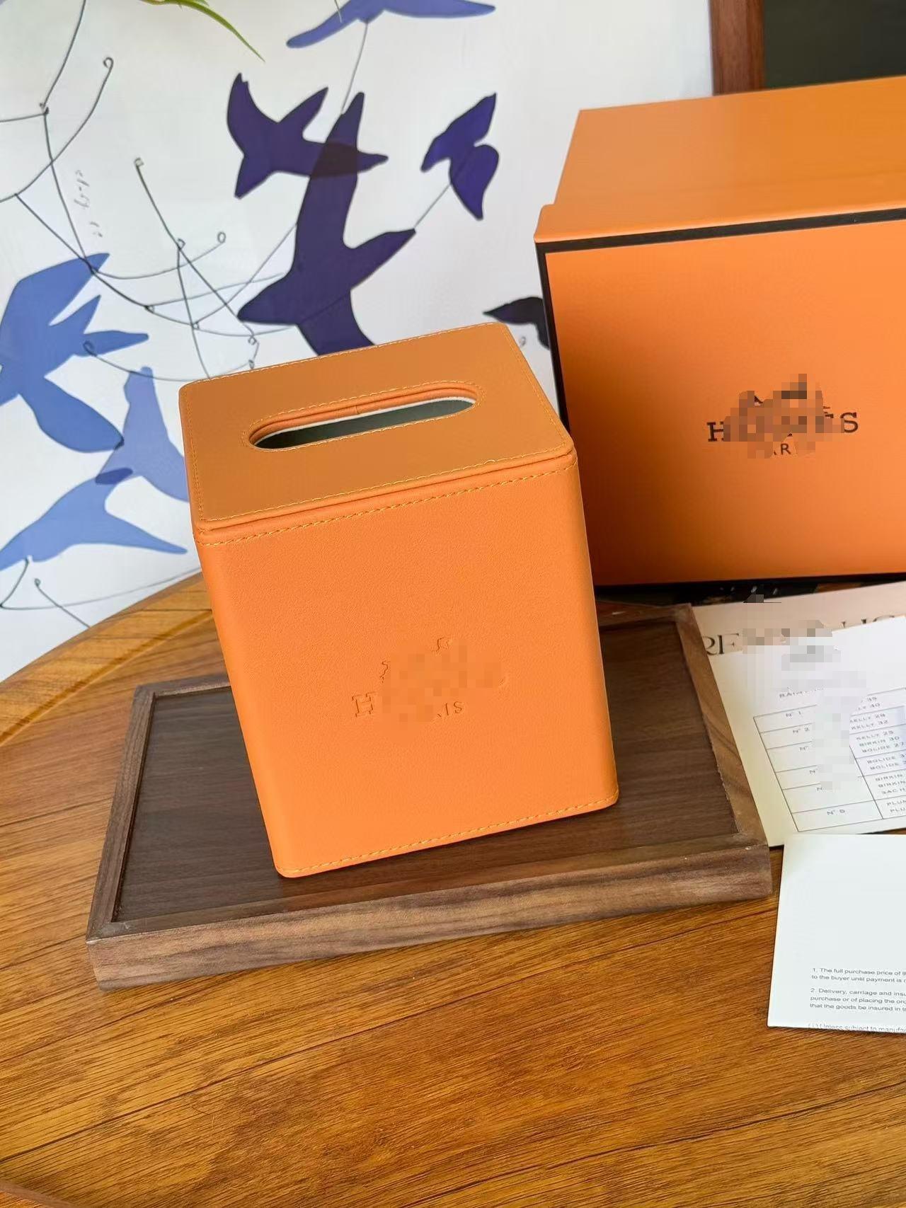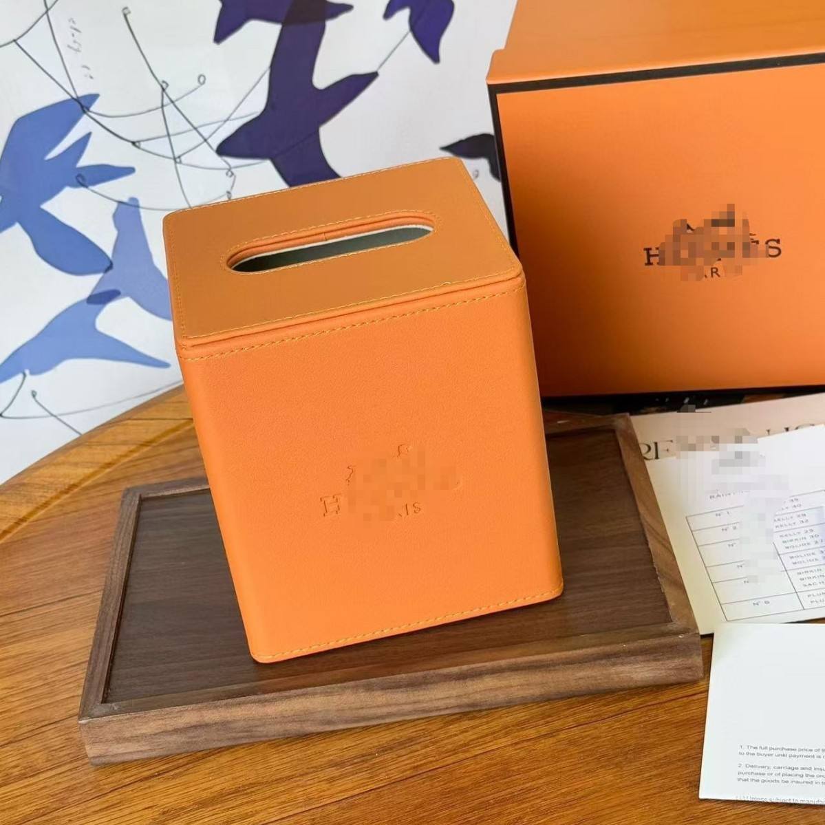 Custom Logo Orange PU Leather Hotel Tissue Box