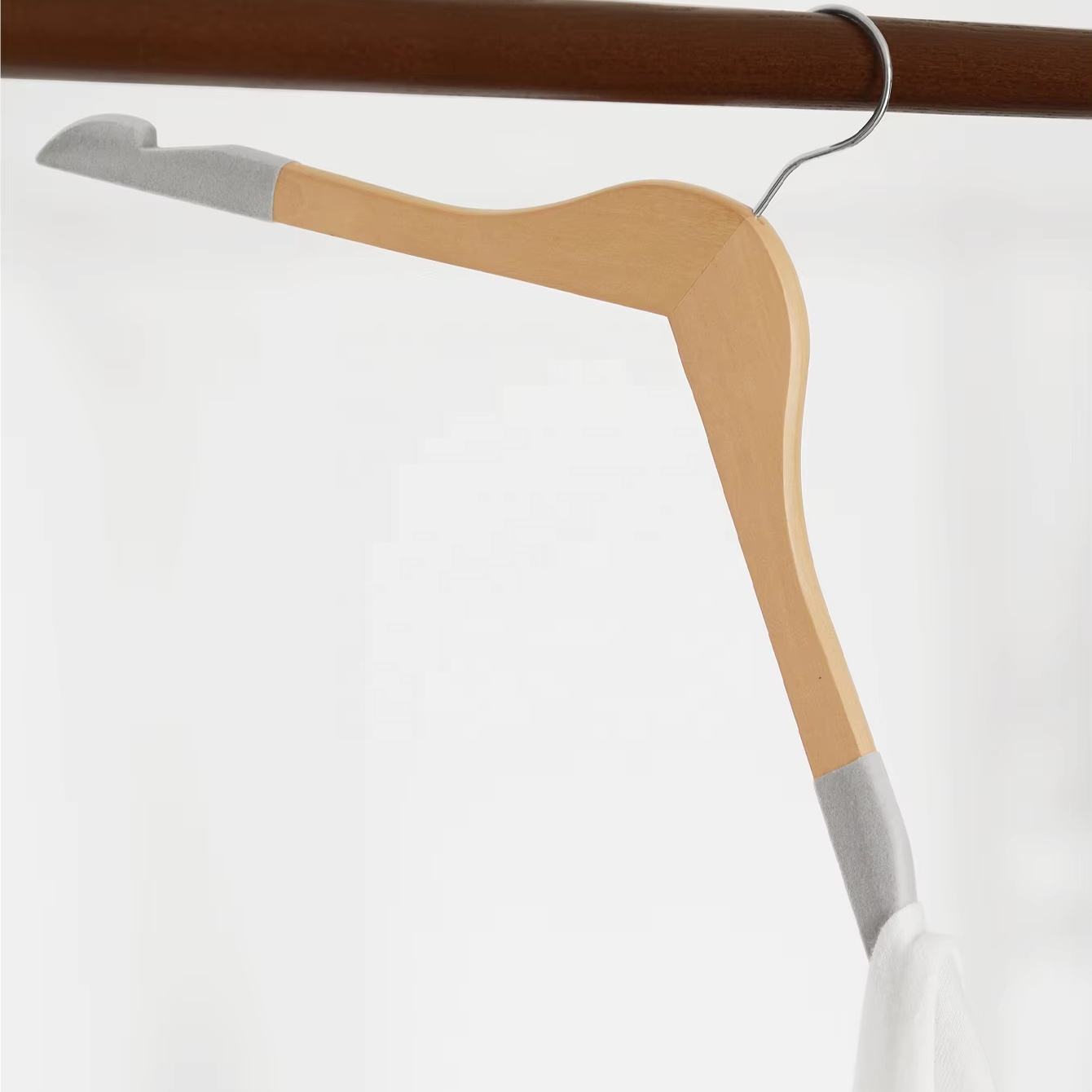 | Name | Natural wooden flocked shoulder anti-slip hanger |