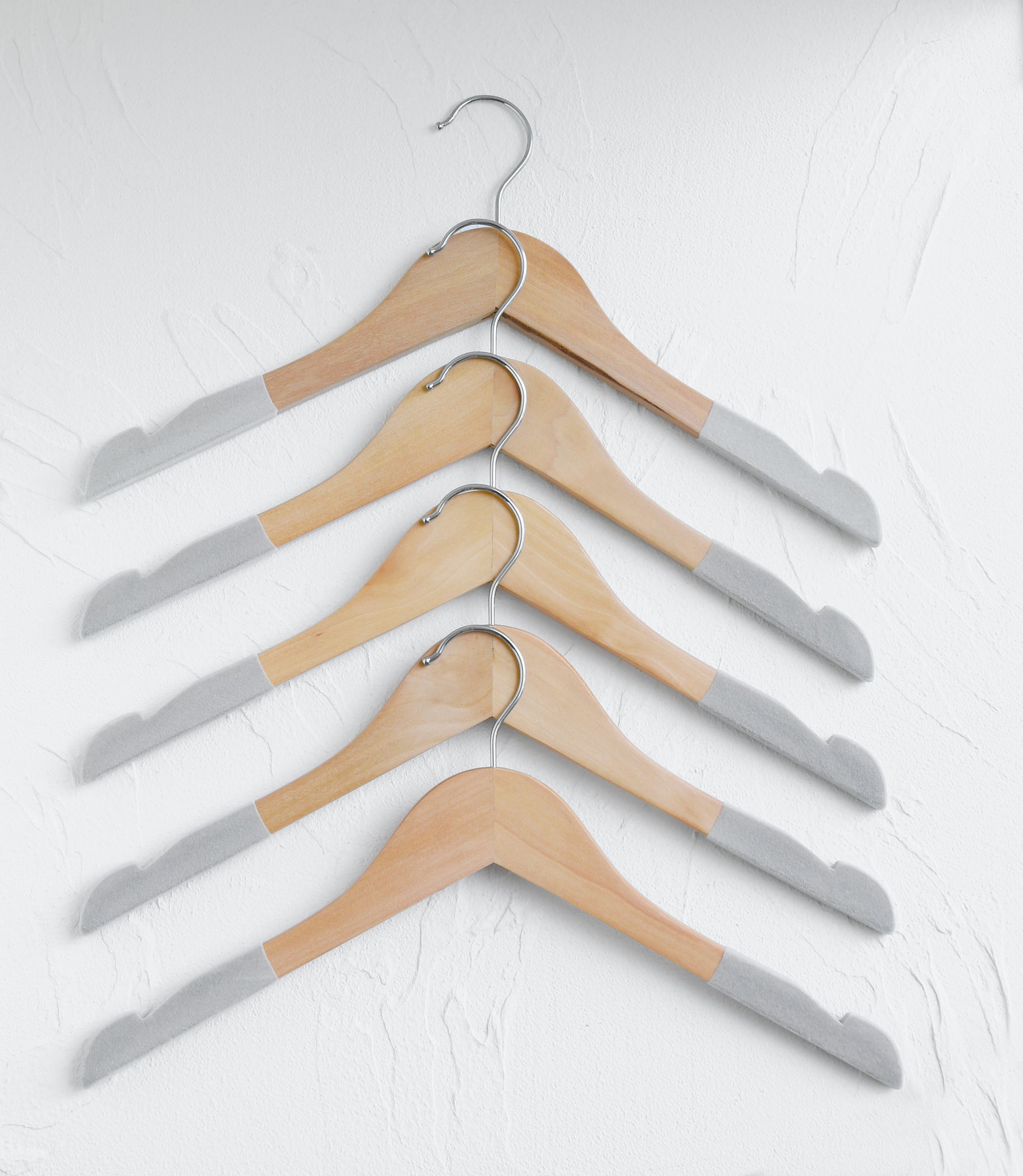 Natural wooden flocked shoulder anti-slip hanger