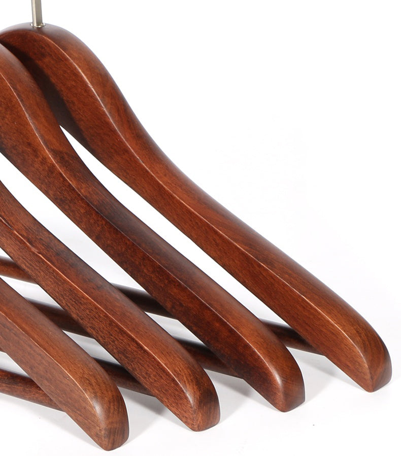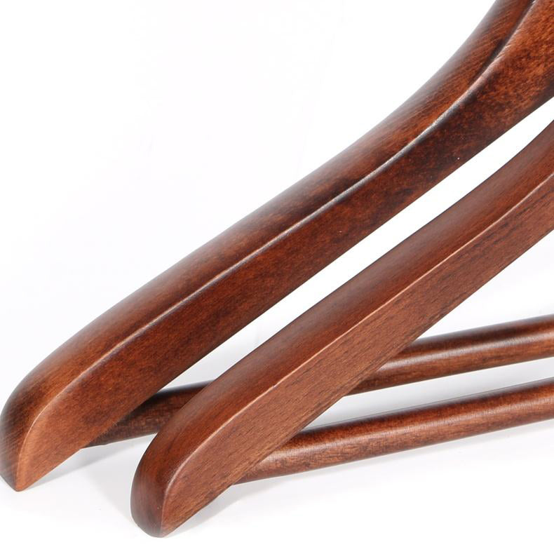 This suit hanger is made of natural solid wood with smooth finish. No irregularities or flaking off of the finish.