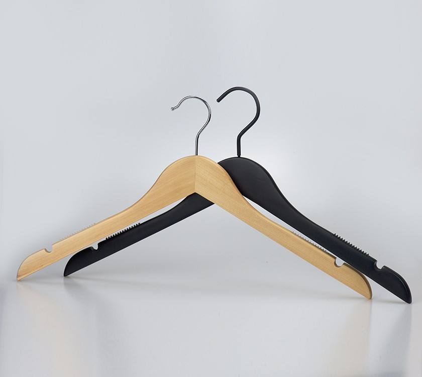 This wooden hanger is made of natural solid wood with a smooth surface, free of irregularities or peeling.