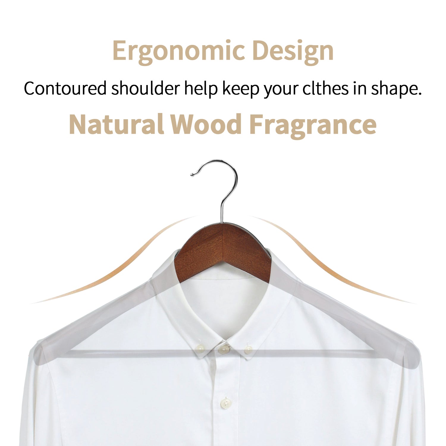 This Luxury Wide Shoulder Antique Wood Coat Hangers for Man is made of lotus (schima) wood. It is with a smooth, colored look that will suit any setting. The broad shoulder allows clothes with garment loops and straps to be hung effortlessly without slipping off the hanger.