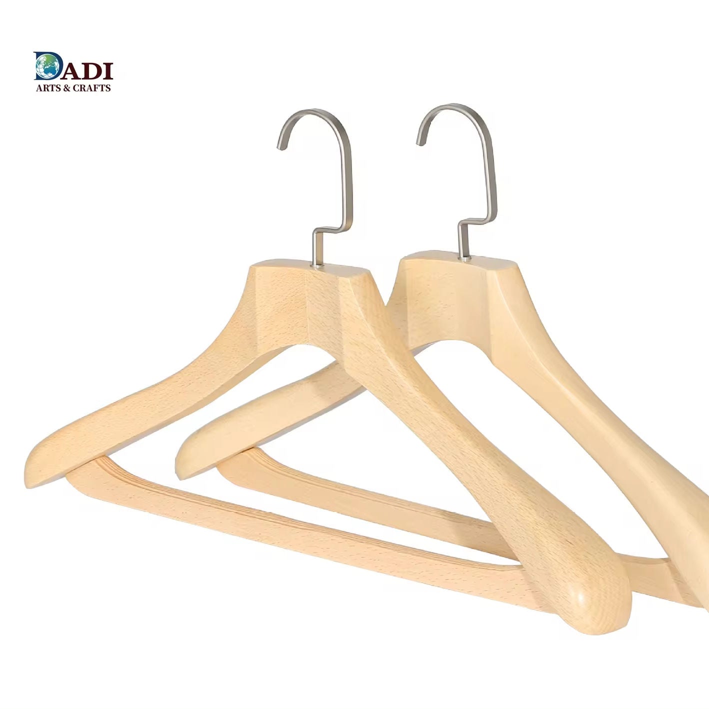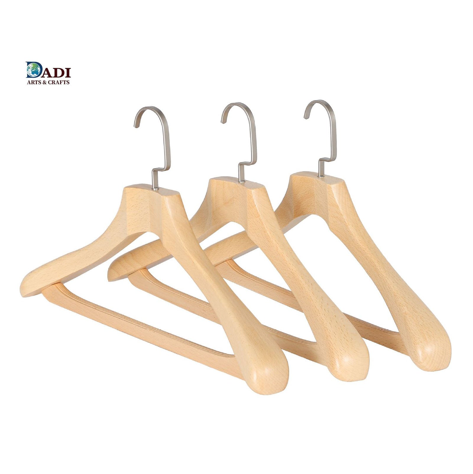 Solid Wooden Suit Hanger With Non-slip Trouser Bar Natural Color