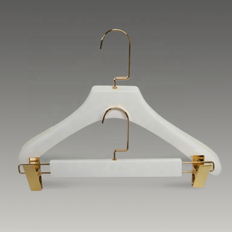 White Beech Wood Suit Clothing Hanger with Anti-slip