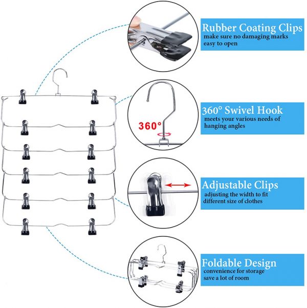 6 ply metal clip hanger can hang six skirts, pants, at the same time, maximize to save space.