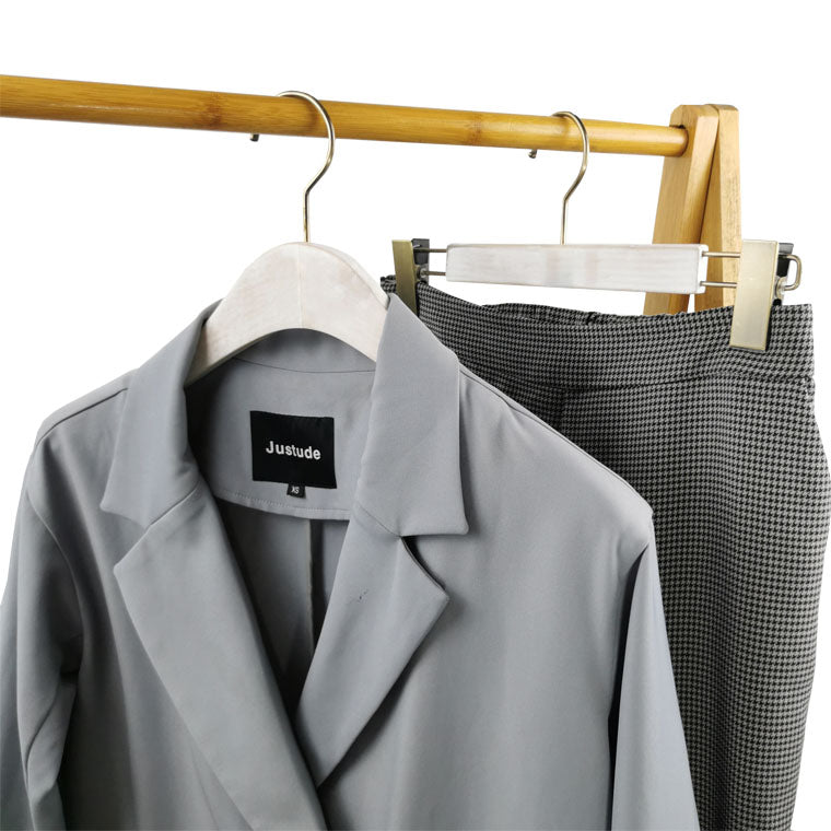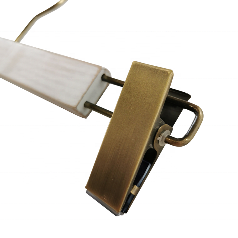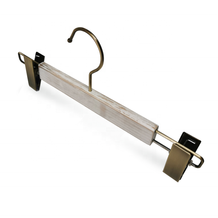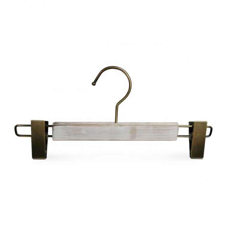 High quality Antique Wash color painted trousers hanger with brass hook and clips.