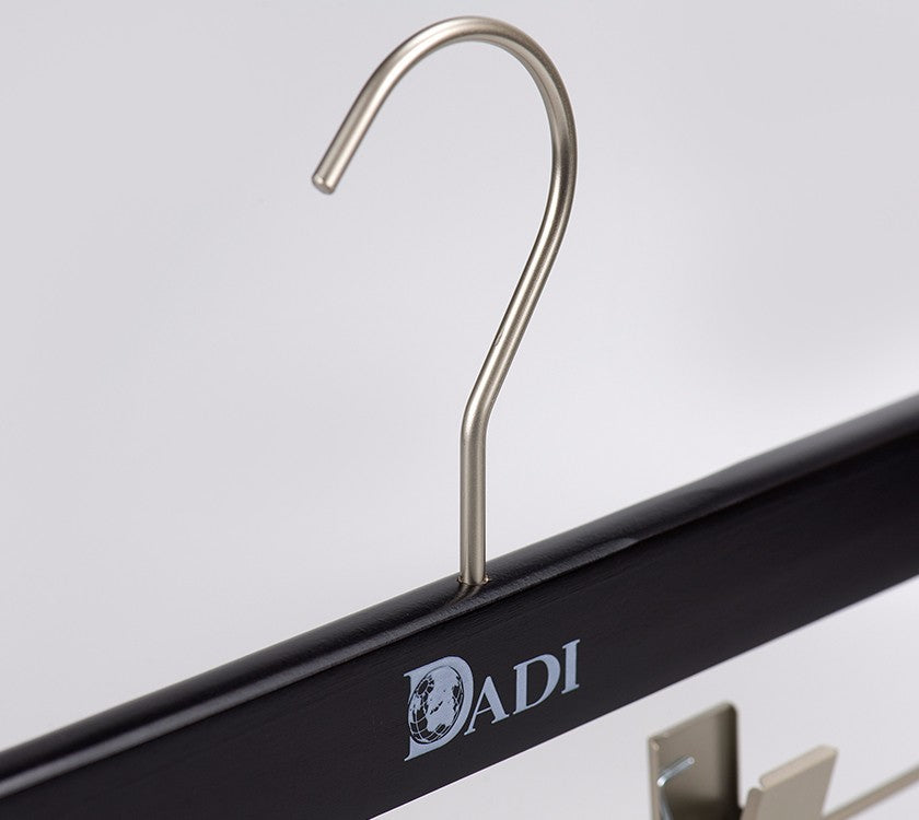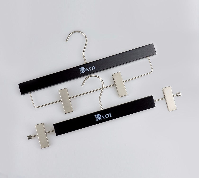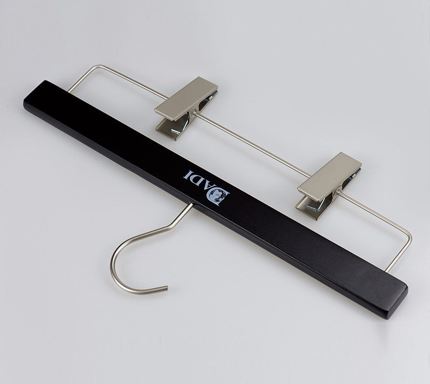 we can custom your logo on the wooden pants hanger ,there have Laser ,Pad printing ,Carve ,Engrave ,Stick ,Metal  LOGO can choose