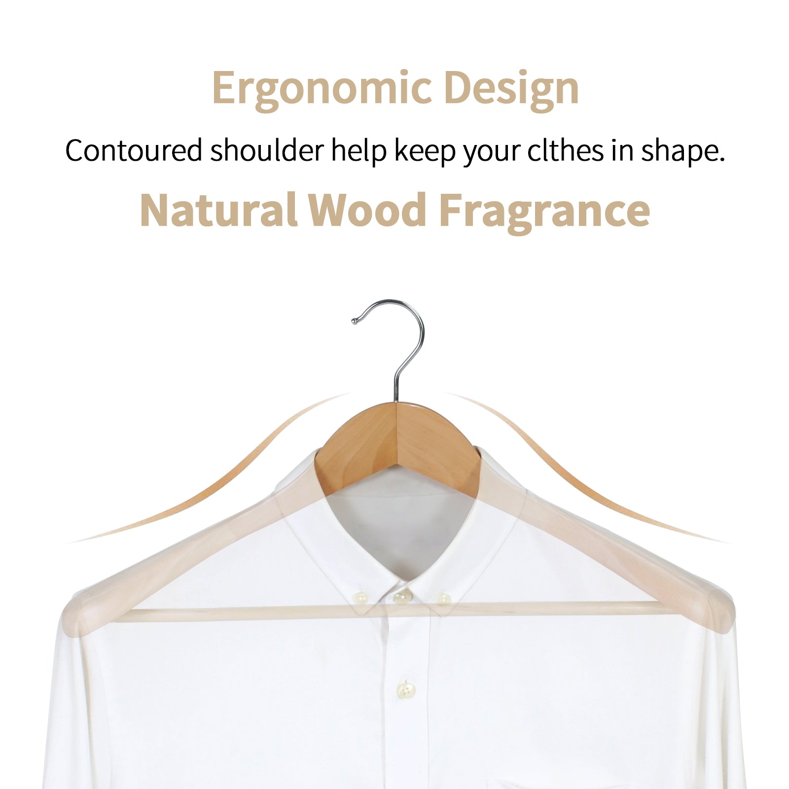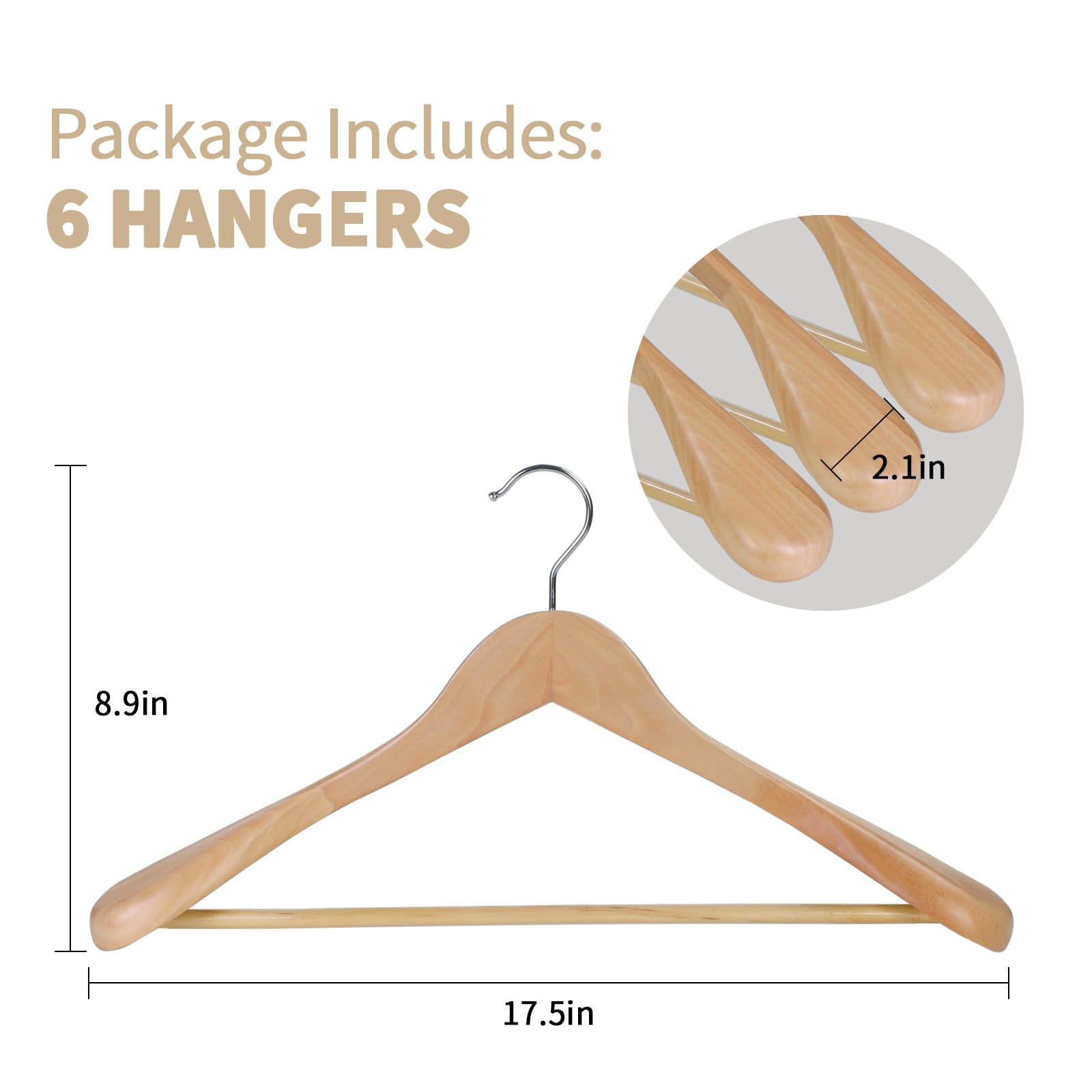 * Reliable Strength - Heavy-duty wooden coat hangers feature a thick hangers body with screw-reinforced thick cross bar and zinc-plated hook that provide superior support of heavier clothes like suit sets and jeans.